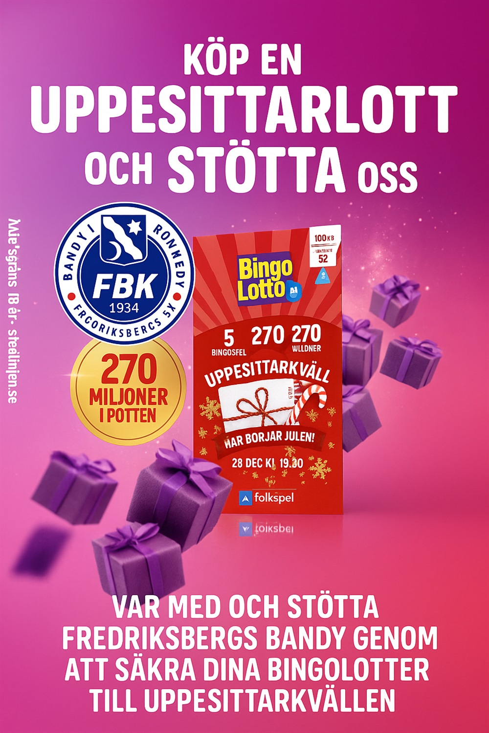 Köp dina uppesittarlotter via oss och bidra direkt till Fredriksbergs BK 💙